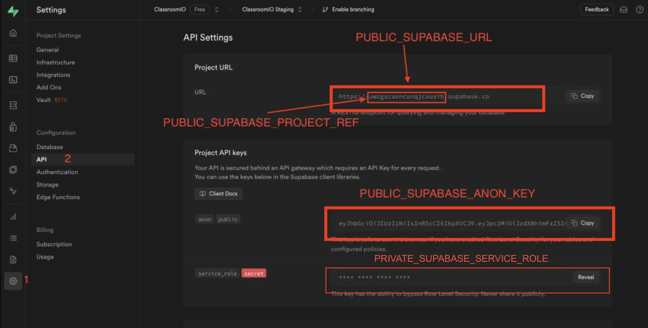 PRIVATE_SUPABASE_SERVICE_ROLE=To get the correct environment variables, follow the instructions in this image: